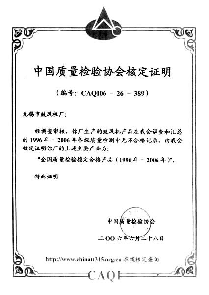中国质量检验协会核定证明